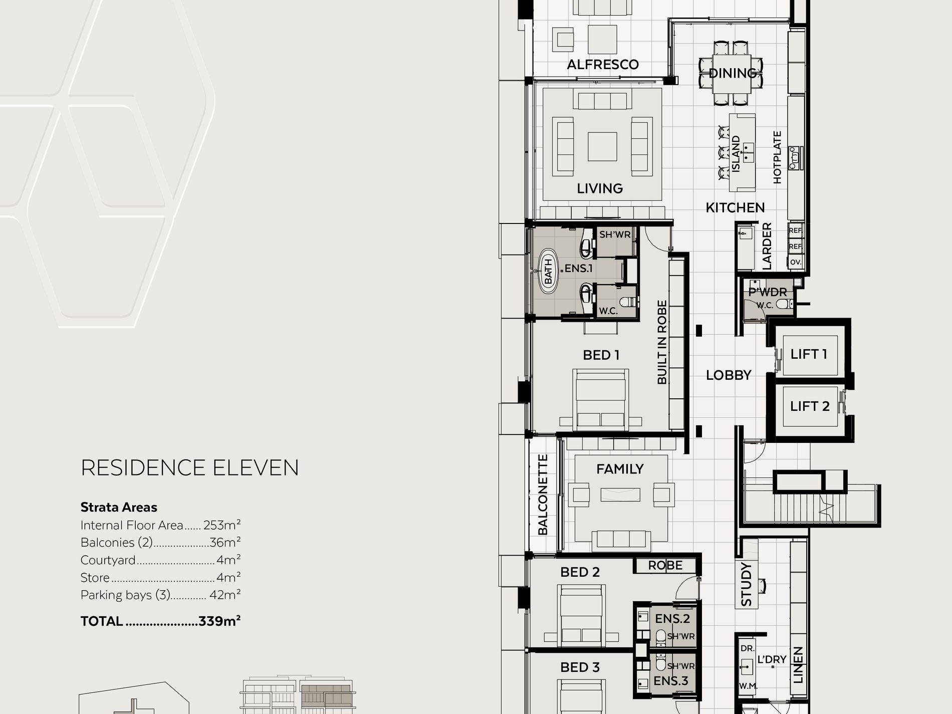 Presenting the Penthouse at Echelon South Perth. A colossal luxury Penthouse boasting 339sqm family-sized indoor and outdoor living with soaring 4.4m ceilings and an array of the world's finest luxury appliances, fixtures and fittings. Above all, the epic views are the real hero, with sweeping vistas through every window of the Swan River, Kings Park, Perth city skyline, and East Perth precinct.