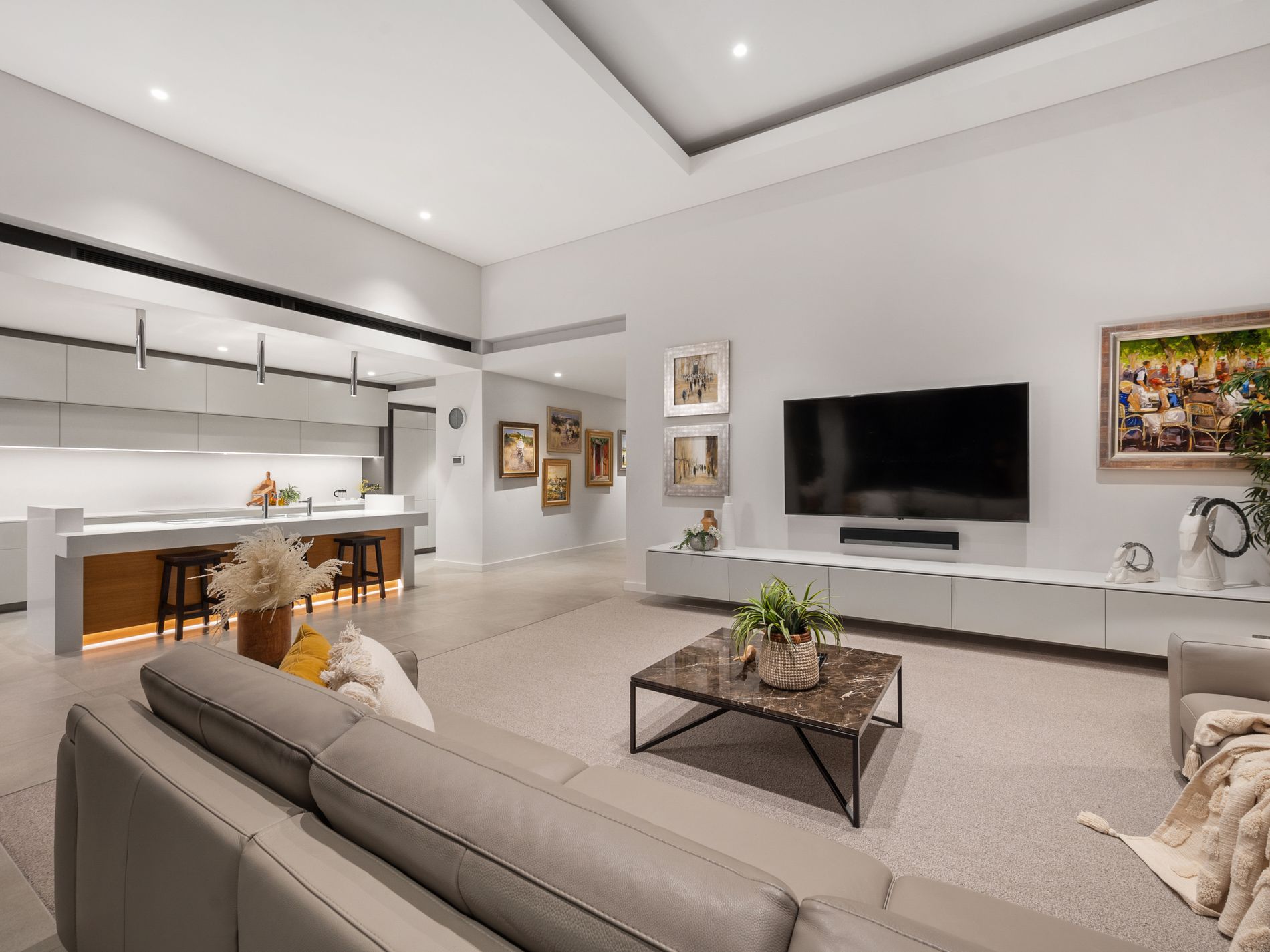View your curated artwork in style as you pass through the entry gallery that flows to the jaw-dropping living quarter. This sun-flooded central hub of the home features an enormous floor-to-ceiling glass façade perfectly capturing spectacular eternal views of the Perth city skyline and the picturesque Swan River. From its absolute waterfront position, these views are yours forever. Light-filled spaces blur the boundaries between indoors and out. Stacking doors open onto large, sociable alfresco balconies equipped with built-in barbecues for year-round entertaining.