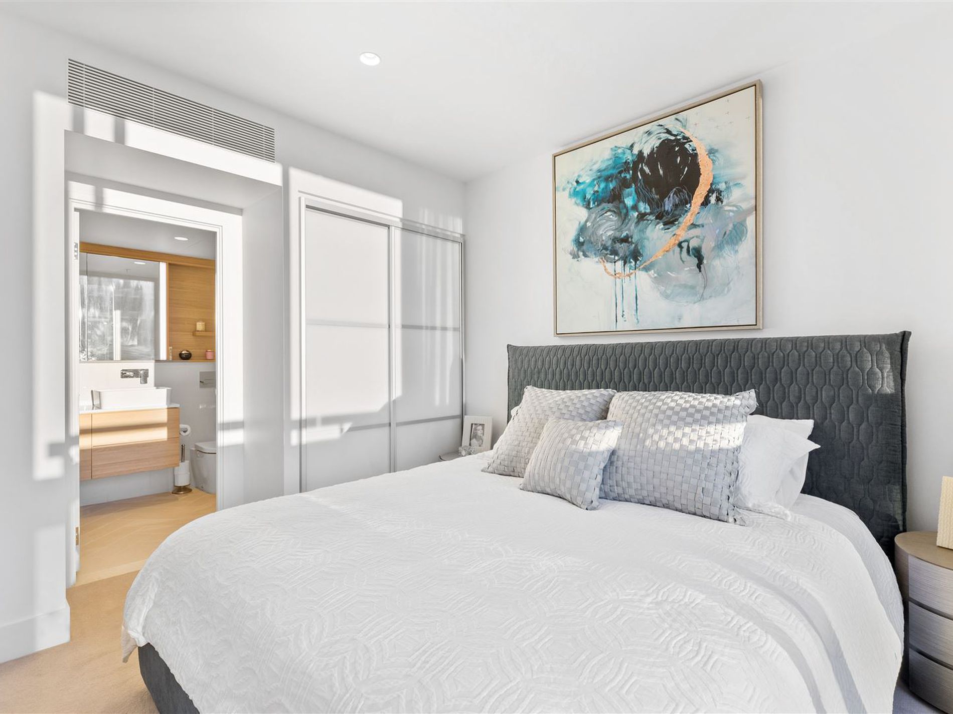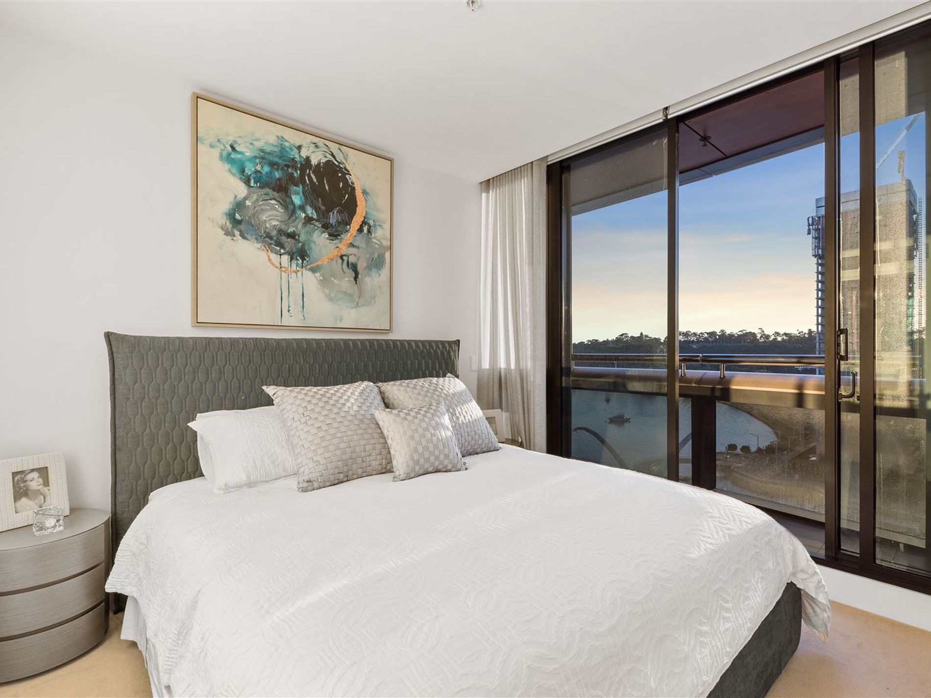 Accommodation comprises of a large bedroom with built-in robes and a modern ensuite. Another bedroom is located opposite with city views and extra-large built-in robes, serviced by a sumptuous bathroom. Both bedrooms are spoilt by extravagant views of the city, EQ, and Kings Park.