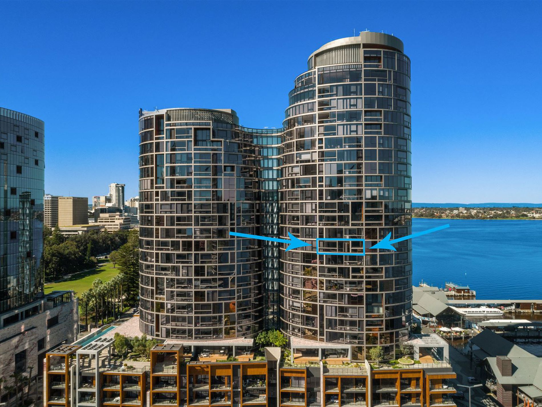 Positioned high up on the 13th floor of The Towers at Elizabeth Quay, one of Perth's most sought-after landmarks, this voluminous two-bedroom, two-bathroom, executive luxury apartment is ideal for executive inner city living or savvy investors. Boasting 109sqm of total strata area, this residence is complemented by resort grade facilities and is ideally positioned right in the heart of Perth CBD, surrounded by the glistening waters of the Swan River.