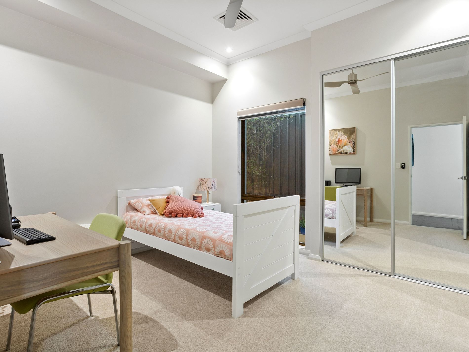 Proceeding through the home, you'll discover a spacious Guest bedroom with its own bathroom right across the hallway. If you don't need the extra bedroom, it is also perfect as a home office with vista of the atrium and opens up to the backyard. The rest of the accommodation is completed by two more large bedrooms, serviced by a sumptuous ensuite, accessible from both sides.