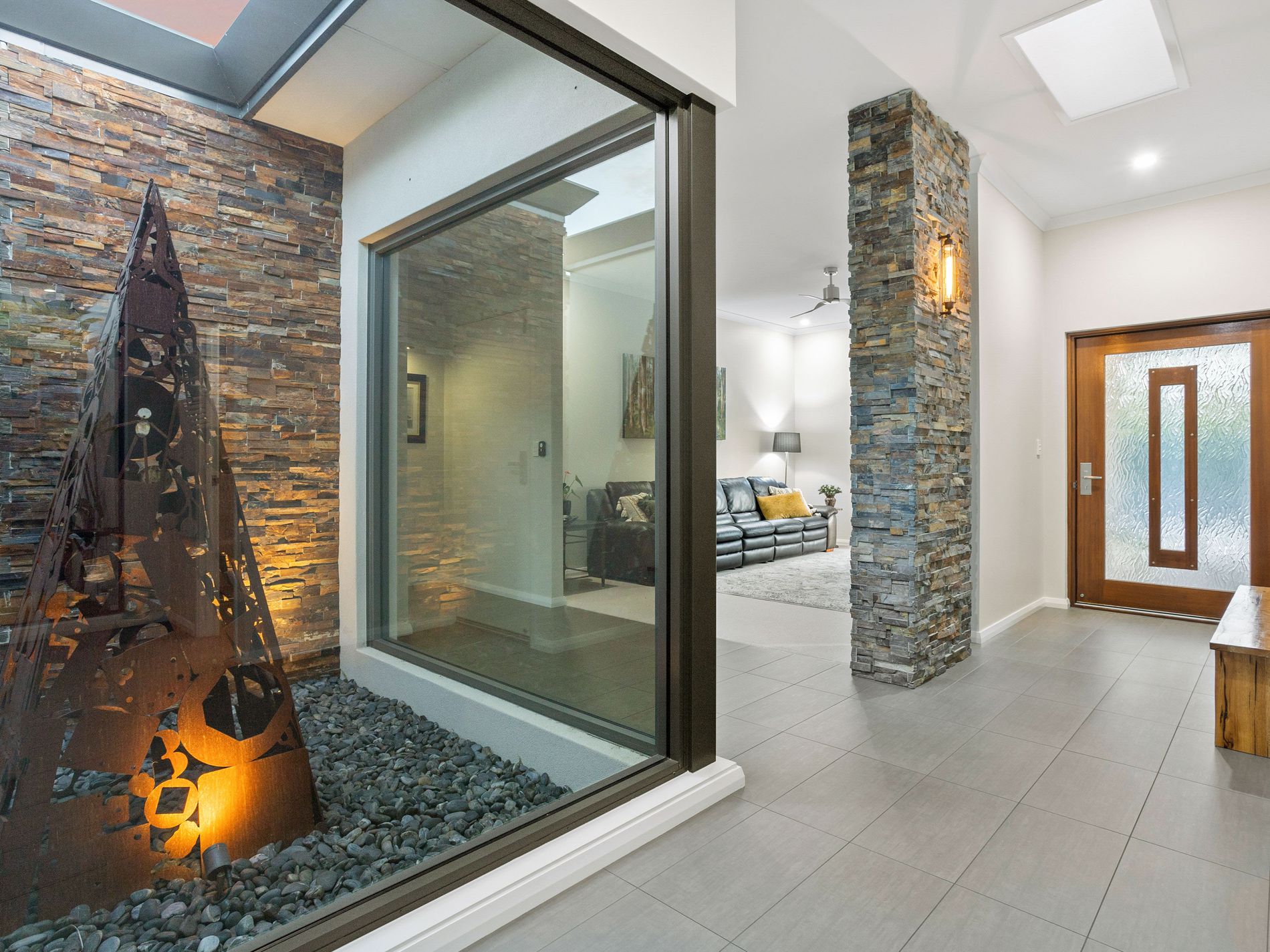 Arrive in style through the double automatic gate to your own front valet parking straight to the front door. A beautiful Jacaranda tree adorns the streetscape of this home, paying homage to these purple beauties that put Perth's Jacaranda season on the world map. Oversized timber entry door with stylish glass panels open to reveal an entry rich in fine details, ideally lined with dual outdoor atriums; the main one features 2.8m-high commercial grade glass facade and stunning Cor-Ten Steel Installation Art, and 35-course high ceiling internally.