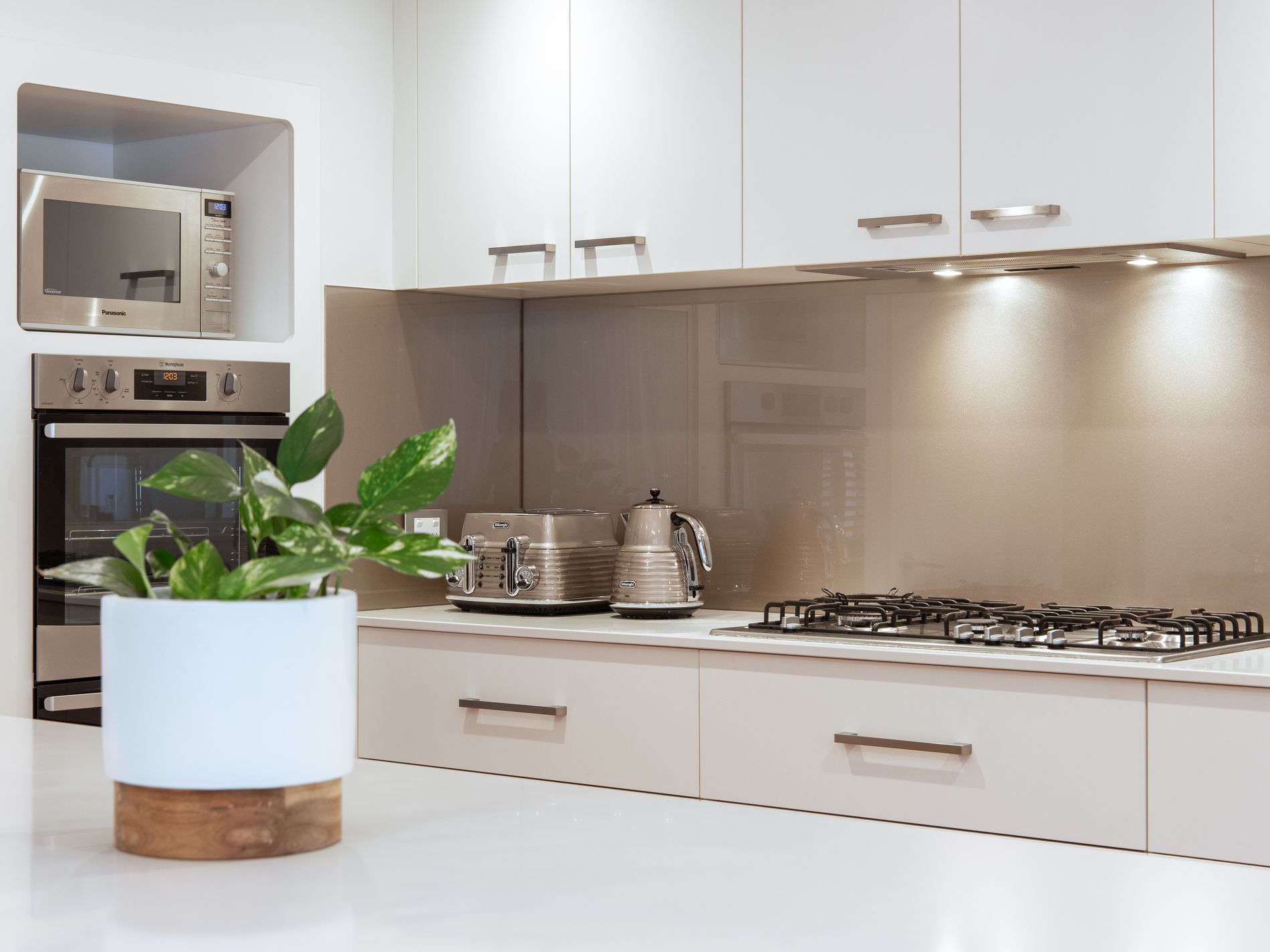 • Italian rectified porcelain tiles and 20mm stone benchtops in kitchen, ensuite, and bathrooms