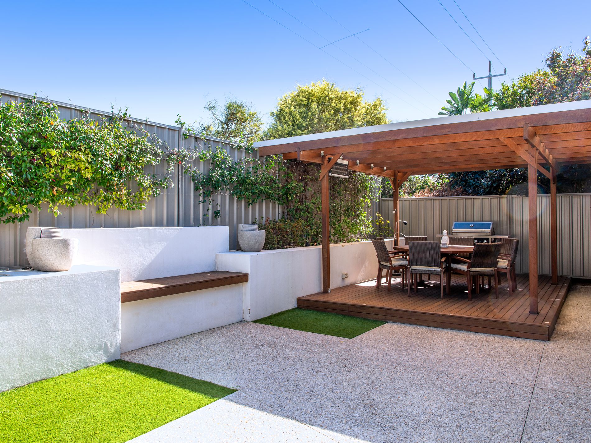 The outdoor area is an entertainer's dream, with its northerly aspect providing an effortless and enjoyable space for gatherings. The Jarrah timber pergola and decks offer a perfect spot to relax and unwind, while the fully rendered elevations and landscaped gardens add a touch of elegance to the ambience.