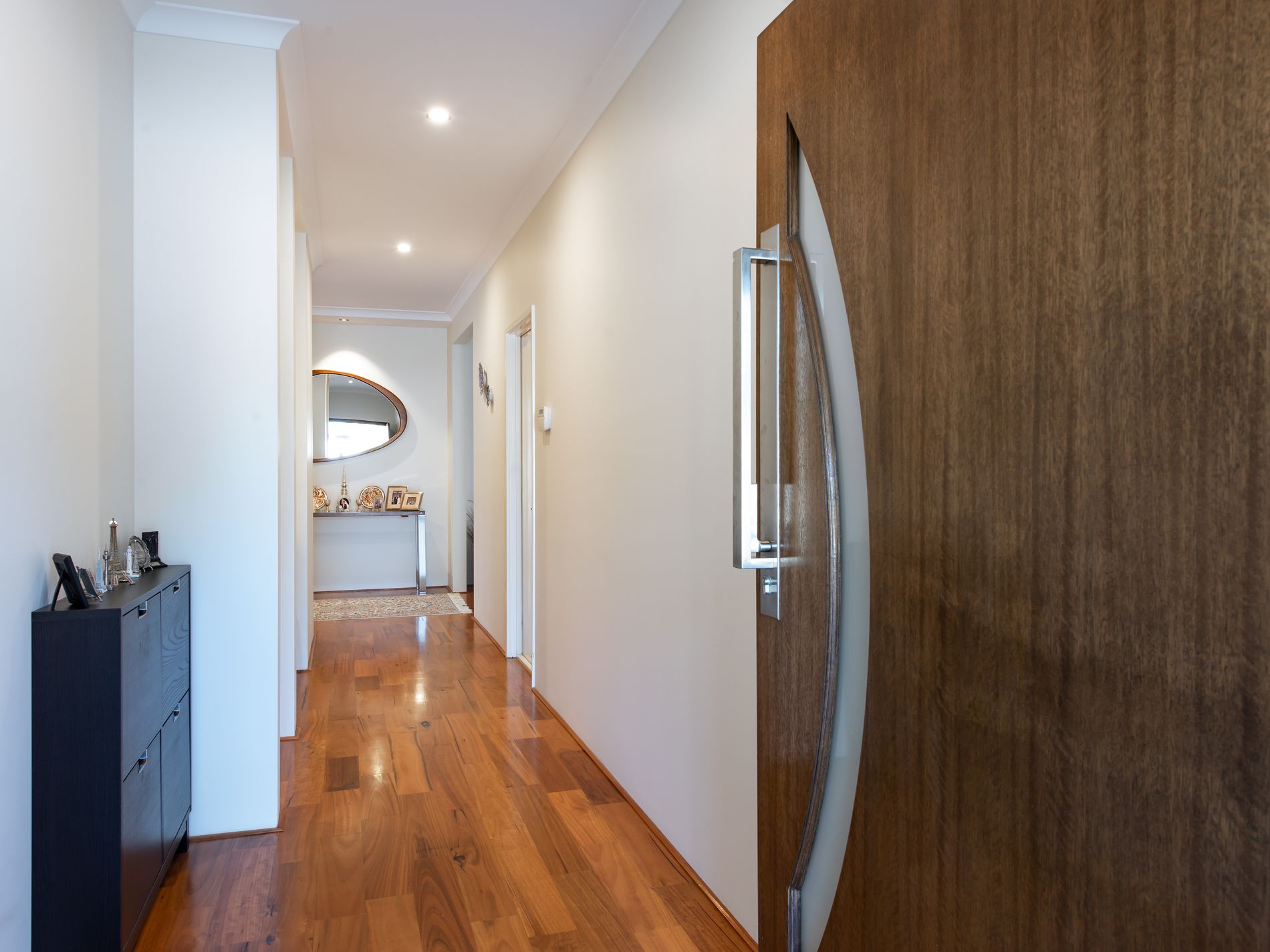 Upon entering the home, you will notice the striking extra-wide entrance door and matching entrance hall, which sets the tone for the rest of the house. The timber Marri floors and square set ceilings create a warm and welcoming atmosphere in the expansive open living area.