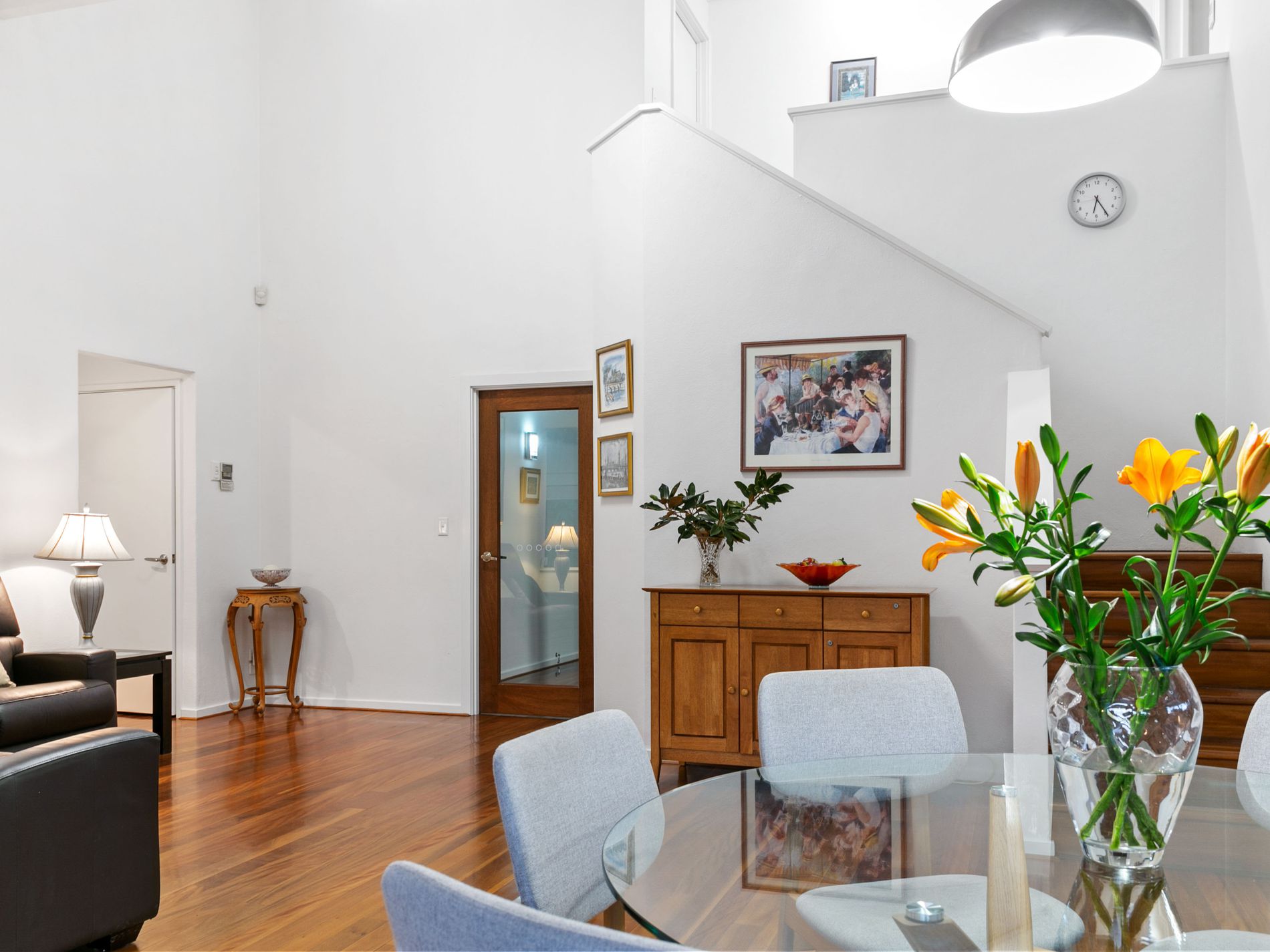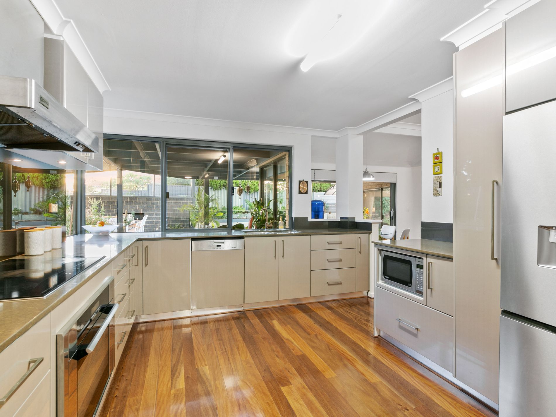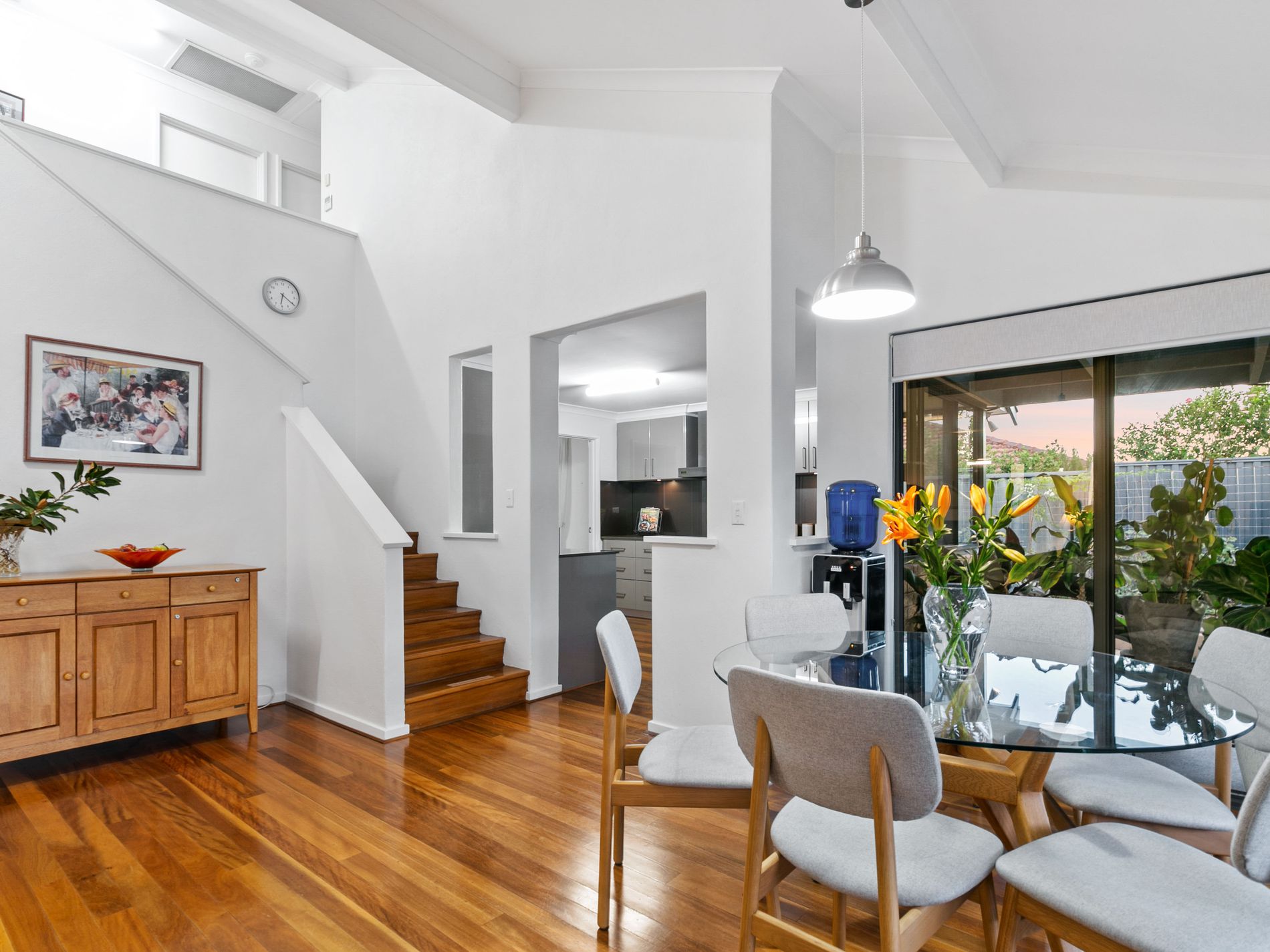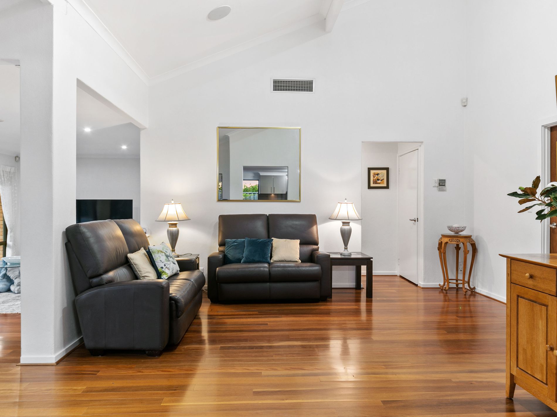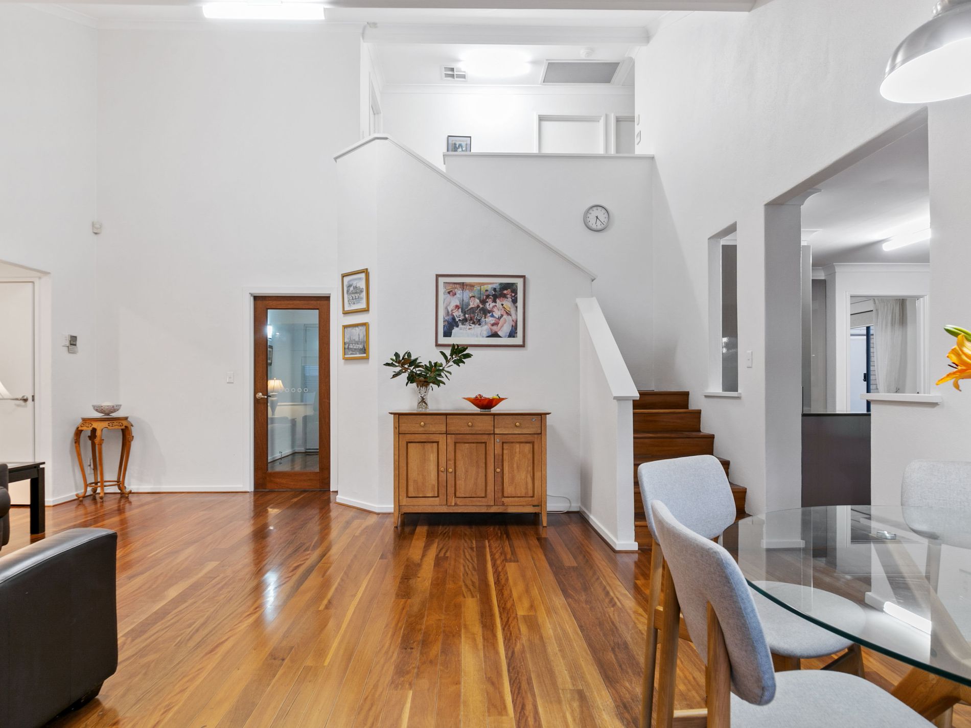Upon entry, the spacious double-door hall welcomes you with its sleek and stylish design, setting the tone for the thoughtfully designed ground floor that caters to modern family living. The entire living area has been recently renovated and is now adorned with beautiful black butt floorboards, further enhancing the modern appeal of the home.