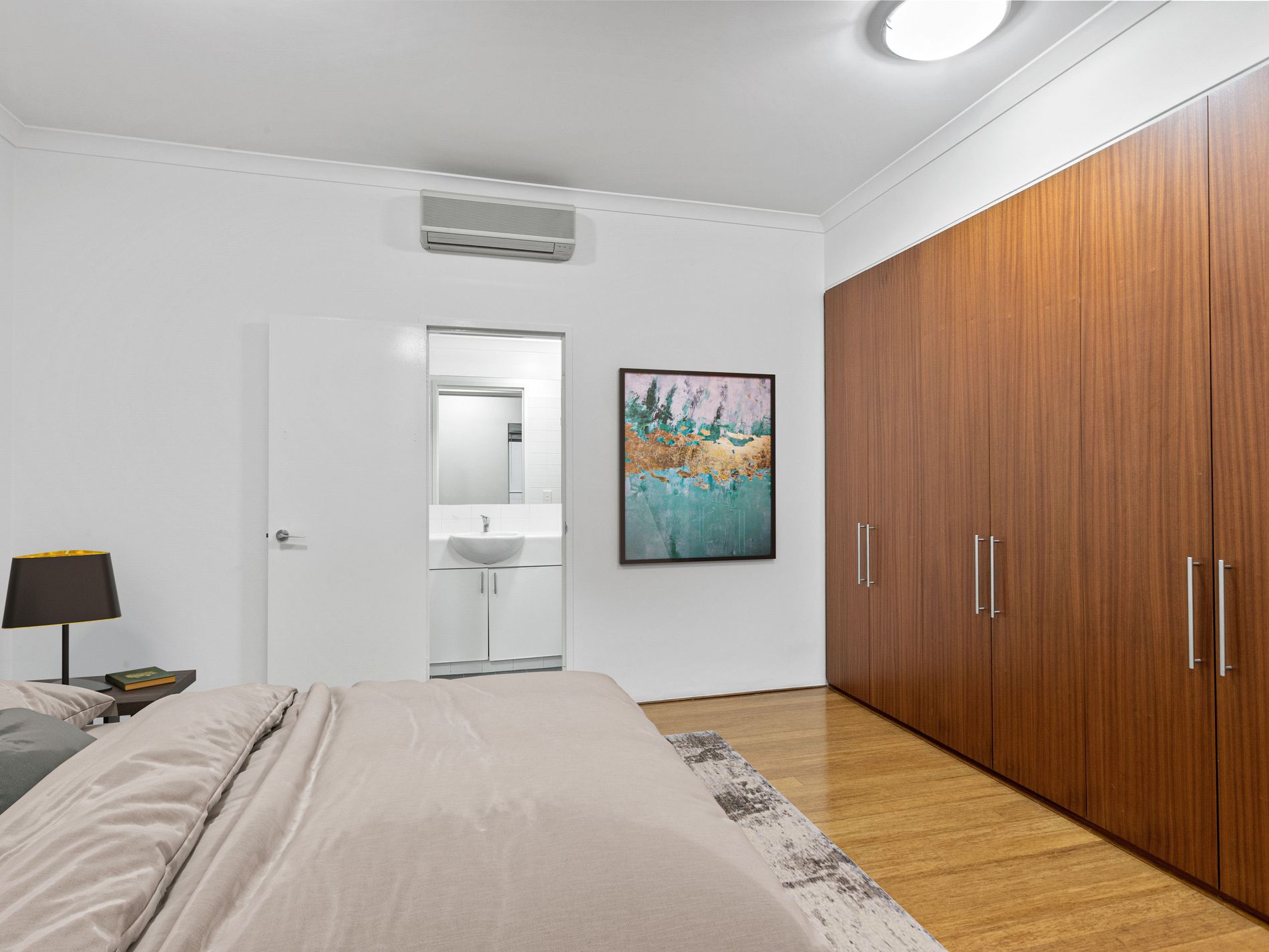 The interior showcases high ceilings, wood floorboards, abundant natural light and a soft colour palate that creates an immediate sense of tranquillity. Ducted air conditioning offers year-round comfort for the residents.