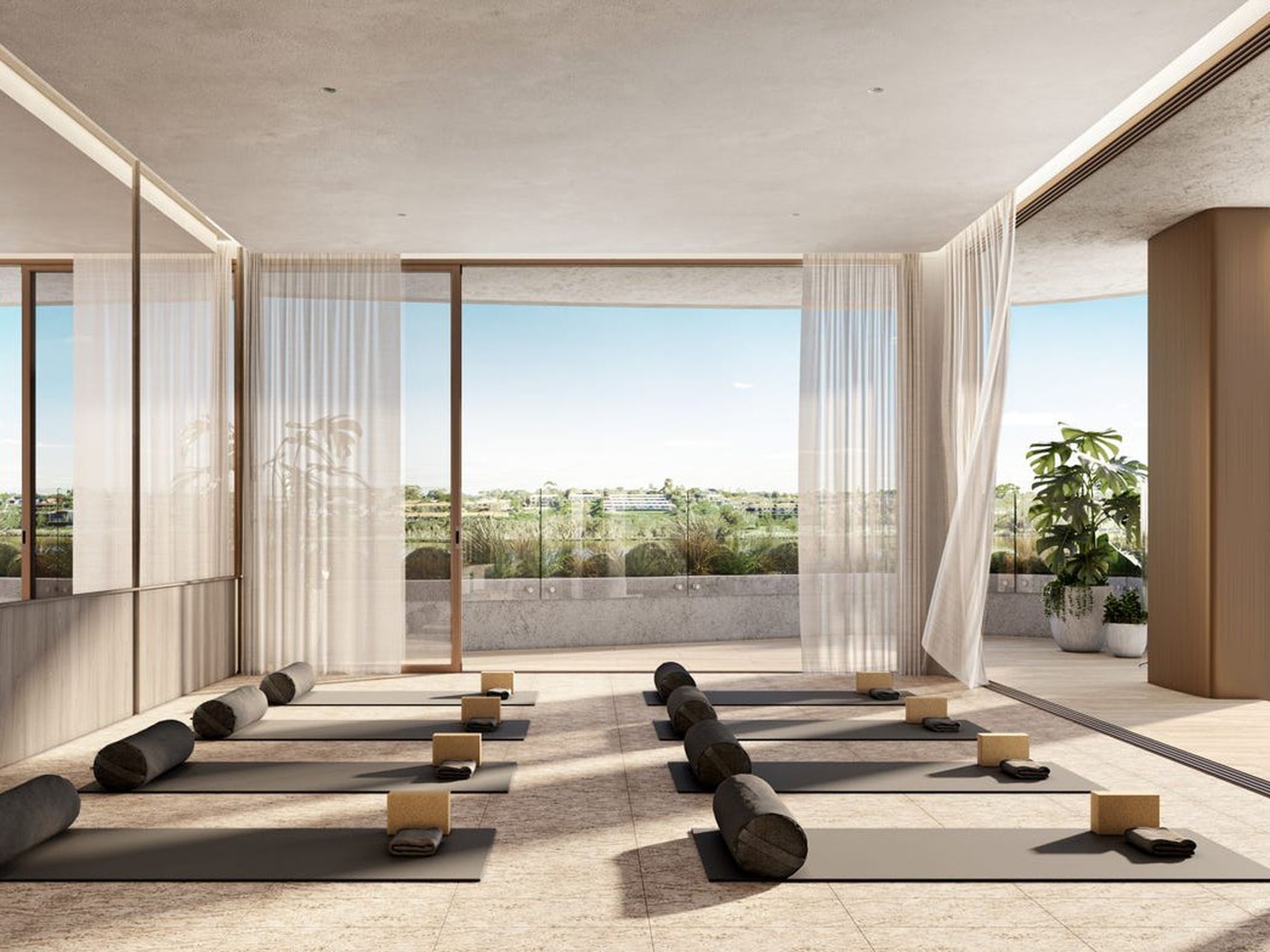 Luxurious resident amenities seamlessly blend with the surrounded natural beauty, offering a sunlit 20-meter infinity pool, spa, sun decks, a wellness centre with a gym, yoga studio, and sauna, and a barbecue observation deck. Your exclusive resident-only dining room overlooks the iconic racecourse and radiant Optus Stadium, setting the stage for unforgettable gatherings.