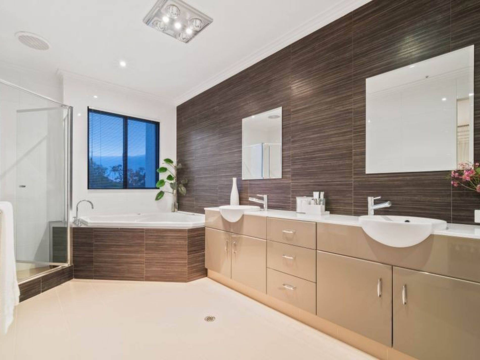 Your tranquil haven is the master suite upstairs with balcony overlooking the park. It has ensuite with his and hers vanity unit and spa.