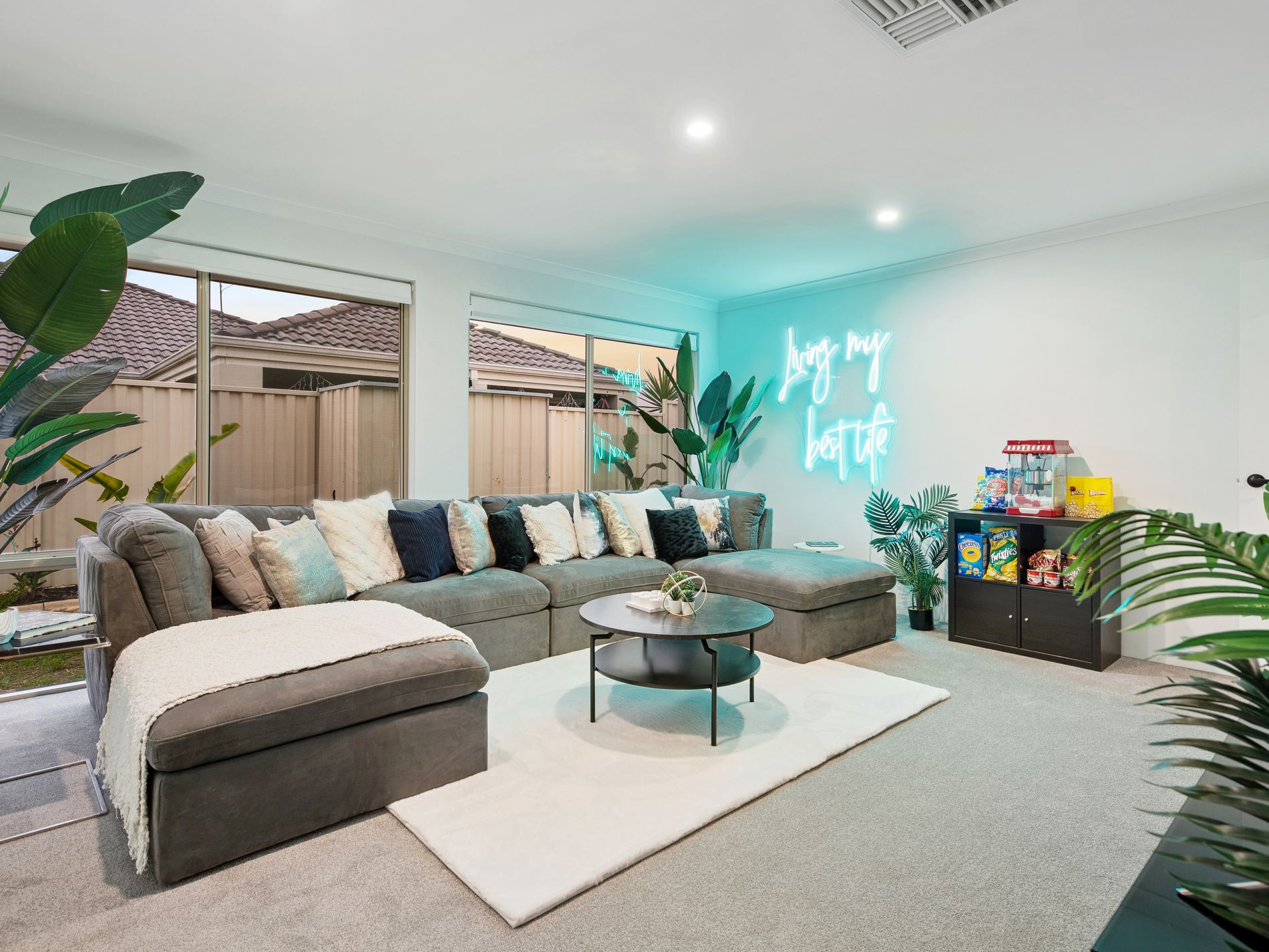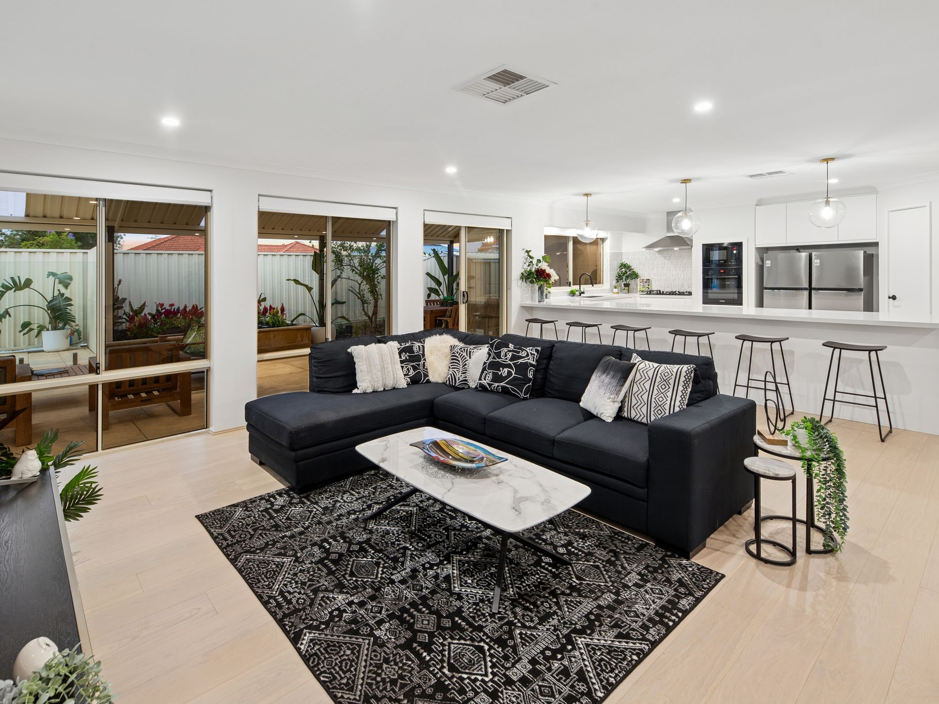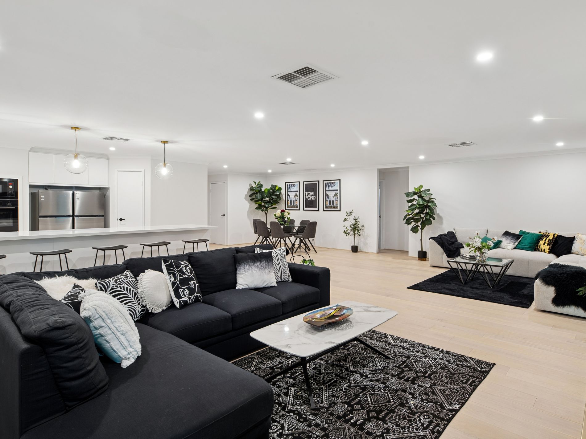 From the moment you step inside, the sense of space is unmistakable. Expansive living zones allow the family to spread out with ease, including a dedicated theatre room for movie nights and a separate study ideal for working from home. The heart of the home is the oversized open plan living and dining area, designed to comfortably accommodate large furniture and busy family life without ever feeling crowded.