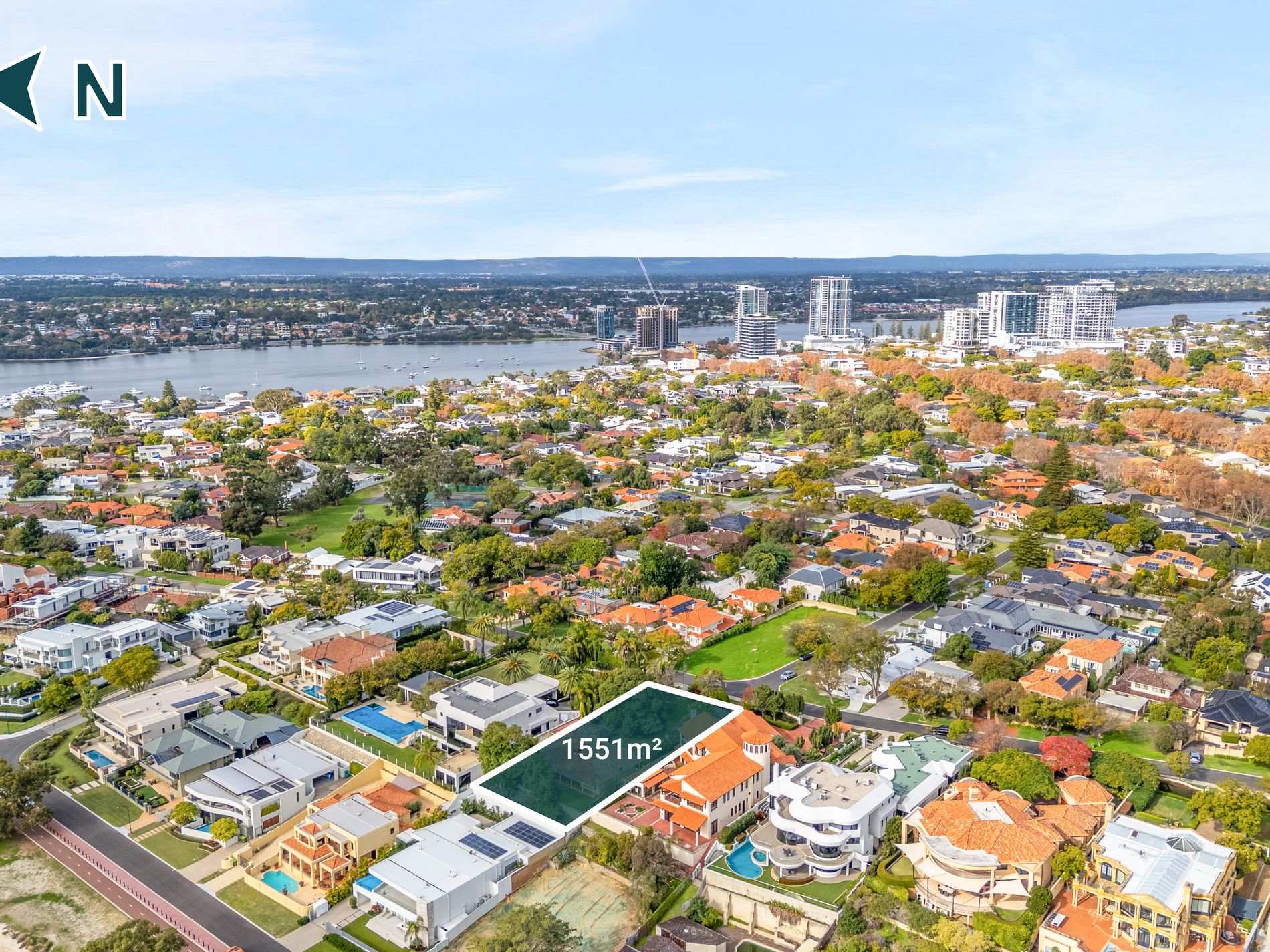 Spanning an expansive 1,551sqm, this perfectly rectangular allotment boasts an impressive 25.1m frontage, a level land profile and a prized northern orientation. Elevated to capture breathtaking, protected panoramic views across the Swan River to the Perth city skyline, the site delivers a remarkable sense of space, light and permanence.
